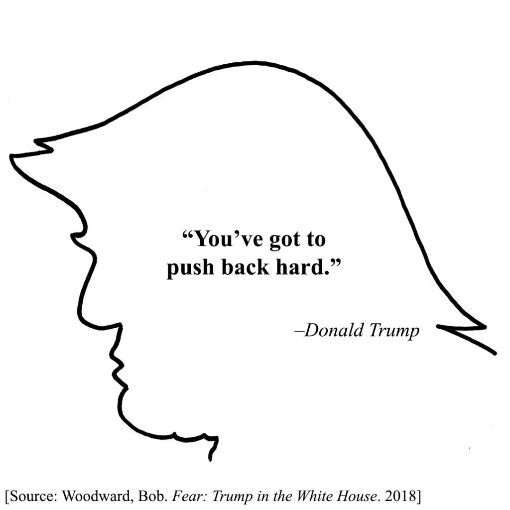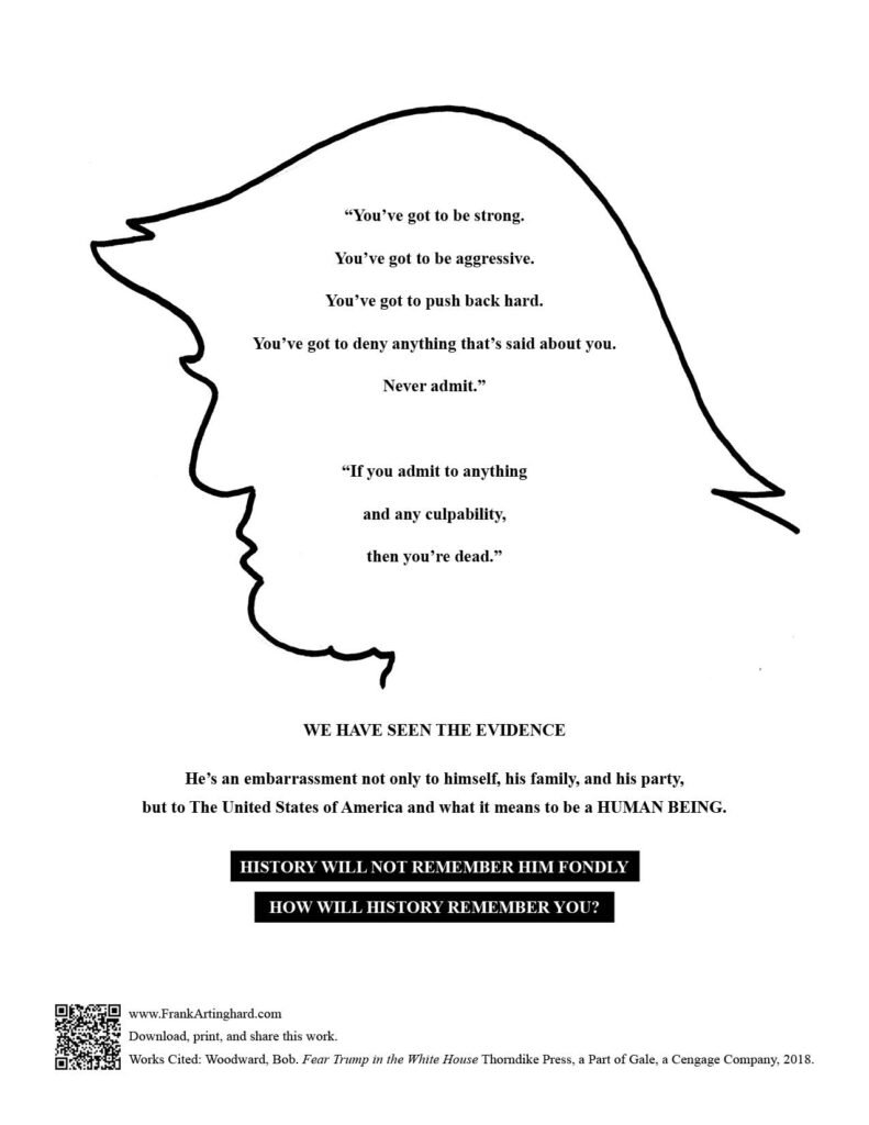 Fortunately, the work has found company. One John Morton has taken inspiration from the silhouette of Donald Trump that anchors The Trump Letter and incorporated it into two striking poster designs — one shown above, another below.
