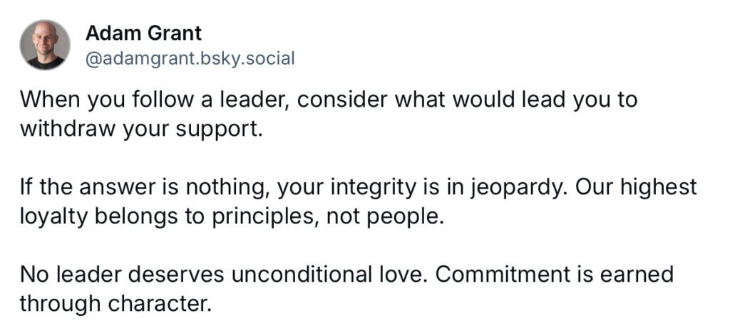 “When you follow a leader, consider what would lead you to withdraw your support.